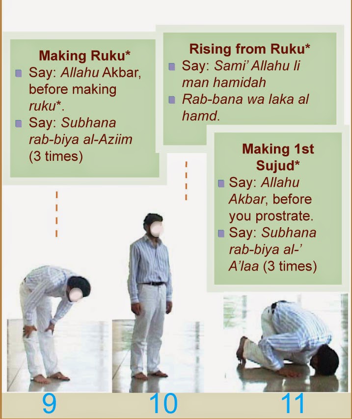 - Go to Ruku (like picture-3) sayin Allahu akbar then say 'Subhana rabbiya al-Aziim' 3 times